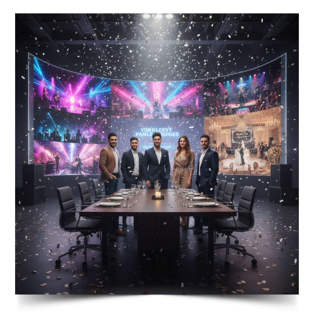 At StageEchoes, we go beyond just music—we create extraordinary event experiences that bring people together, celebrate special moments, and leave lasting memories. Whether it’s a corporate event, wedding sangeet, birthday party, private gathering, or a large-scale musical show, we design and execute events that engage, inspire, and entertain.